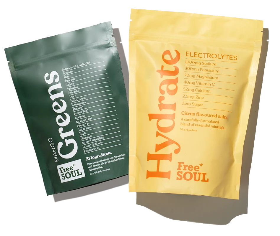 Free Soul Greens and Hydrate are made to work side by side - delivering daily superfoods, supporting immunity and your everyday glow with one simple routine.