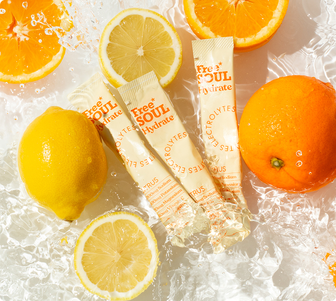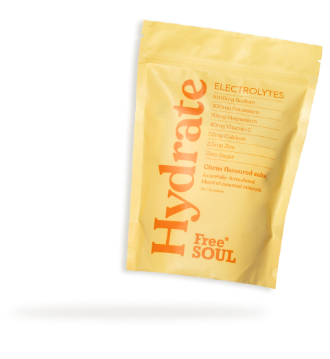 Electrolytes are found in the food and drink we consume, however that is not always enough. Losing fluid through sweat or illness affects the electrolyte balance in our systems, which water alone cannot restore. Free Soul Hydrate helps to restore this balance by replacing key electrolytes such as Sodium, Potassium, Calcium and Magnesium.