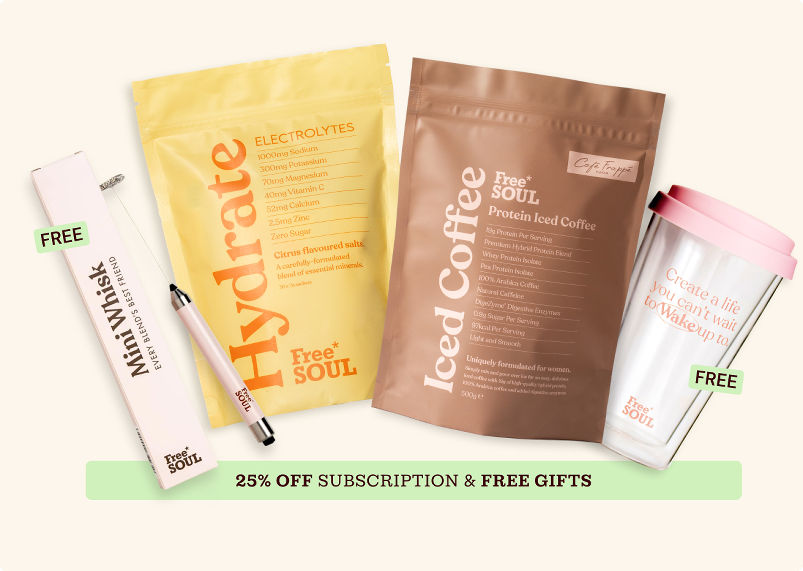 Each bundle includes a Free Soul whisk and mug to make your daily routine effortless from day one. For best results, enjoy both products consistently - small, simple habits that help you feel your best, every day.